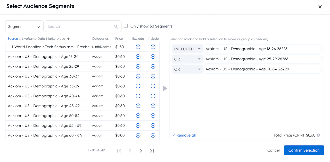 • Segment Targeting (leverages the Commerce Grid Data Marketplace)