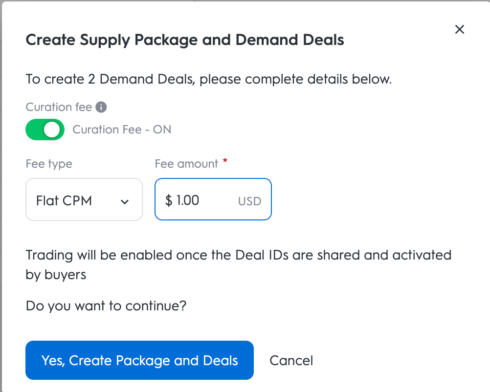 Ensure your desired choices are made here, as the Demand Deals will be automatically created after clicking "Yes, Create Package and Deals"