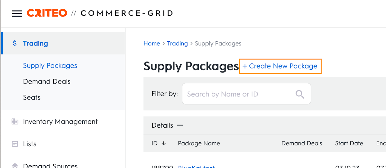 To get started with Deal Sync, navigate to the Trading tab, and select Supply Packages.