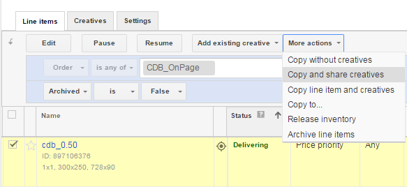 You can create the first line on the same page. The goal is to create one dedicated line item per different CPM price bands.