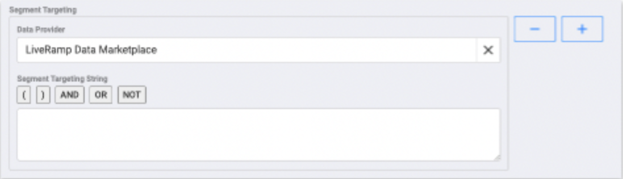 Select from the existing available segments by searching for LiveRamp Data Marketplaceas a data provider within the “Audience Segment” section of the supply packaging workflow.
