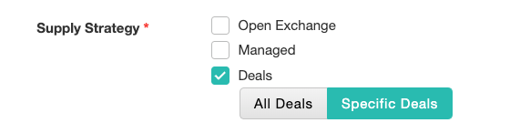 At the line item-creation level, drop down the Basic Setup tab. In the Inventory & Brand Safety Targeting > Supply Source subsection, select Deals in the Supply Source section. Once there, under Supply Strategy, check the box for Deals, and then make sure you select Specific Deals. Selecting this will change the typical line item creation workflow. Make sure that Deals is the only box you check off, or you'll be targeting the open exchange plus other deals, as well!