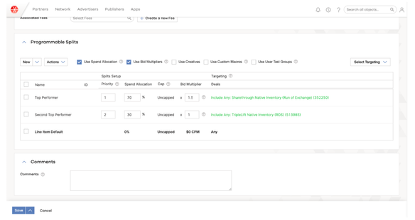 In addition, Xandr Invest DSP allows media buyers to implement splits using spend allocations and bid multipliers on various levels of targeting (geo, inventory, system, etc). Advertisers can prioritize delivery to one exchange over another by using augmented line items.